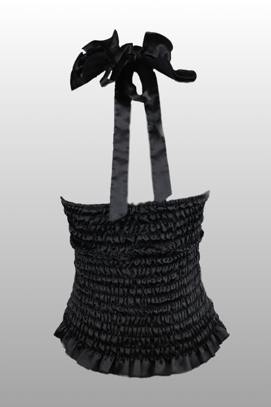 2000s Black Sequin Ruffle Halter Neck Tie Top