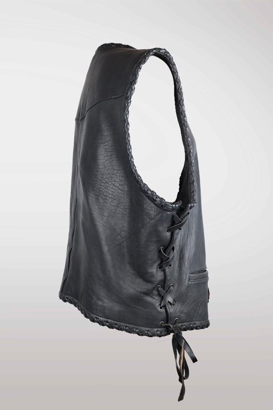 90s Vintage Donna Karan Leather Braided Western Style Vest