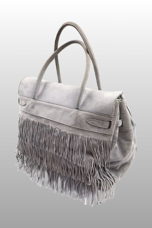 Sold outGrey Suede Fringe 'Firkin' Bag